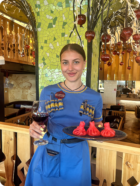 В «Сачмэли», как в настоящем грузинском доме, где сердце поёт и стол ломится от угощений, бережно хранят традиции и радуются жизни каждый день! По средам, пятницам и субботам — огненное Сачмэли-шоу с аутентичными артистами, а за окнами сияет площадь Победы.